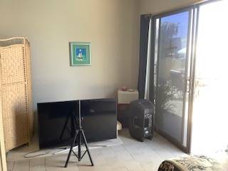 The third bedroom of this structure has a separate entrance, and opens onto a currently-unfinished patio area. Just a few potted plants and some patio décor and this will be an inviting entrance to this private area. Designed as a complete little apartment, there is a small, step-saving kitchen that is open to the living and dining areas, the sunny bedroom and private bathroom, as well as, its own laundry area. This would be perfect for a mother-in-law, or ca be your opportunity to own a home with a pool, and have rental income, to boot!